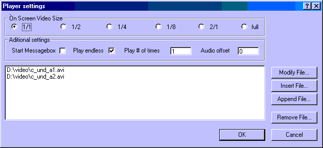 This button allows you to insert avi files BELOW the highlighted entry.